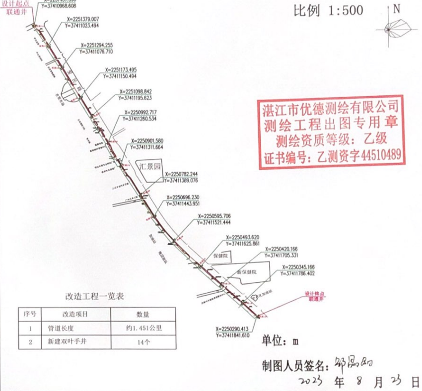 建设规模:管道长度1.451公里,新建双叶手井14个