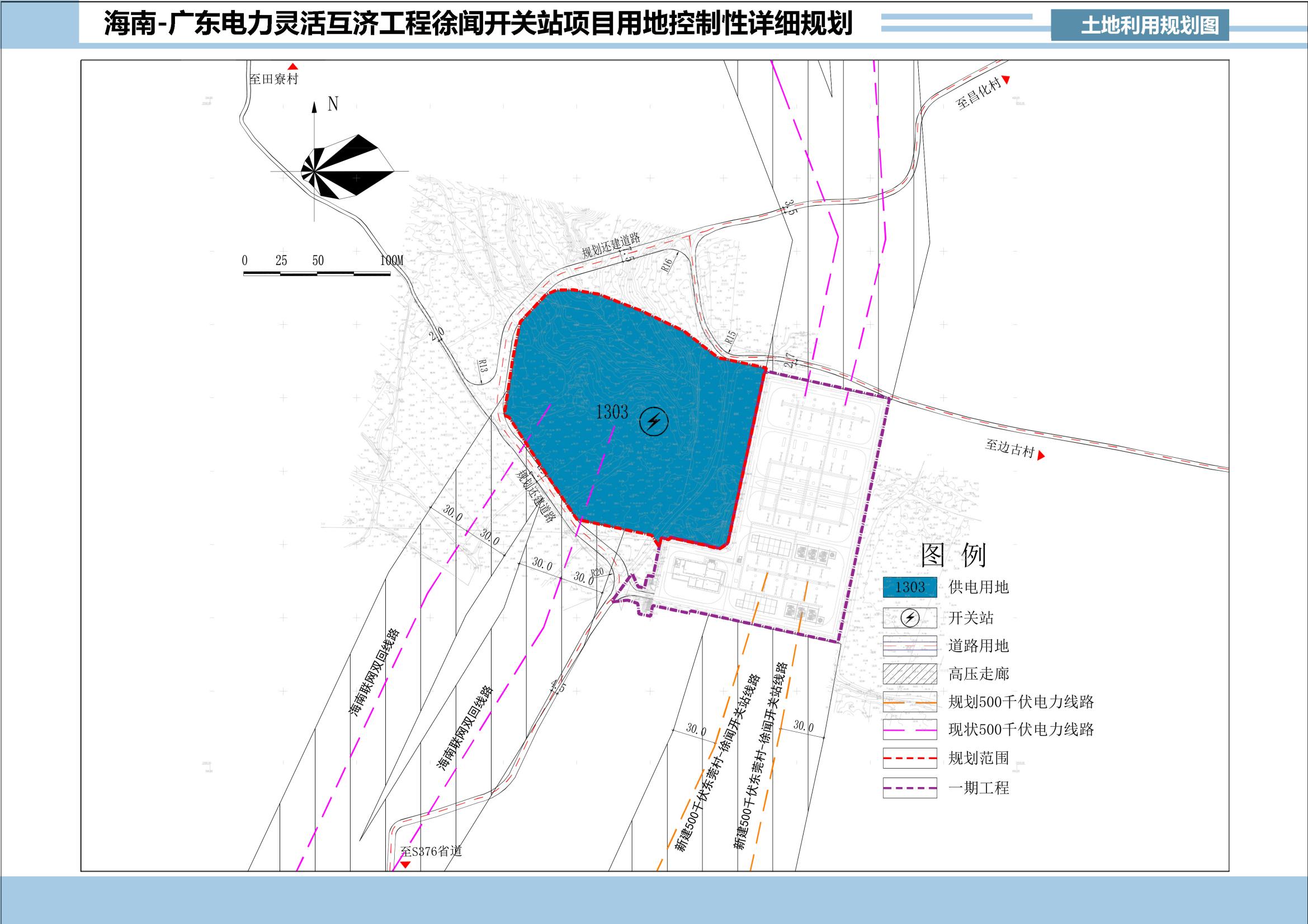 规划地块位于徐闻开关站一期西侧,总用地面积为21872平方米。规划控制要求及指标:供电用地21872平方米,主要经济技术指标为:容积率小于或等于1.0,建筑密度小于或等于40%,建筑限高36米及以下,绿地率为大于或等于15%。