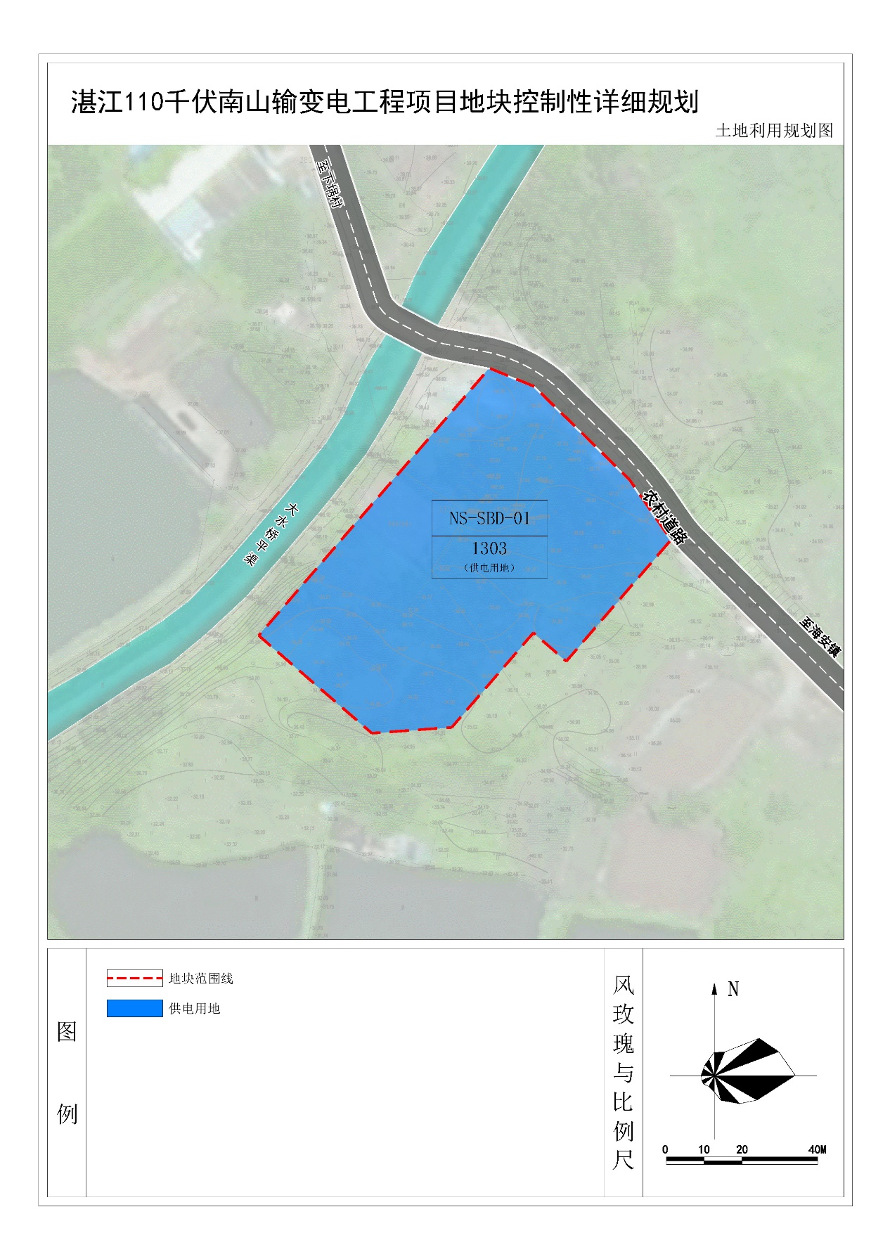 规划地块位于徐闻县南山镇下埚村徐海大道西侧,总用地面积为5616.77平方米。规划控制要求及指标:供电用地5616.77平方米,主要经济技术指标为:容积率小于或等于1.0,建筑密度小于或等于40%,建筑限高24米及以下,绿地率为大于或等于30%。