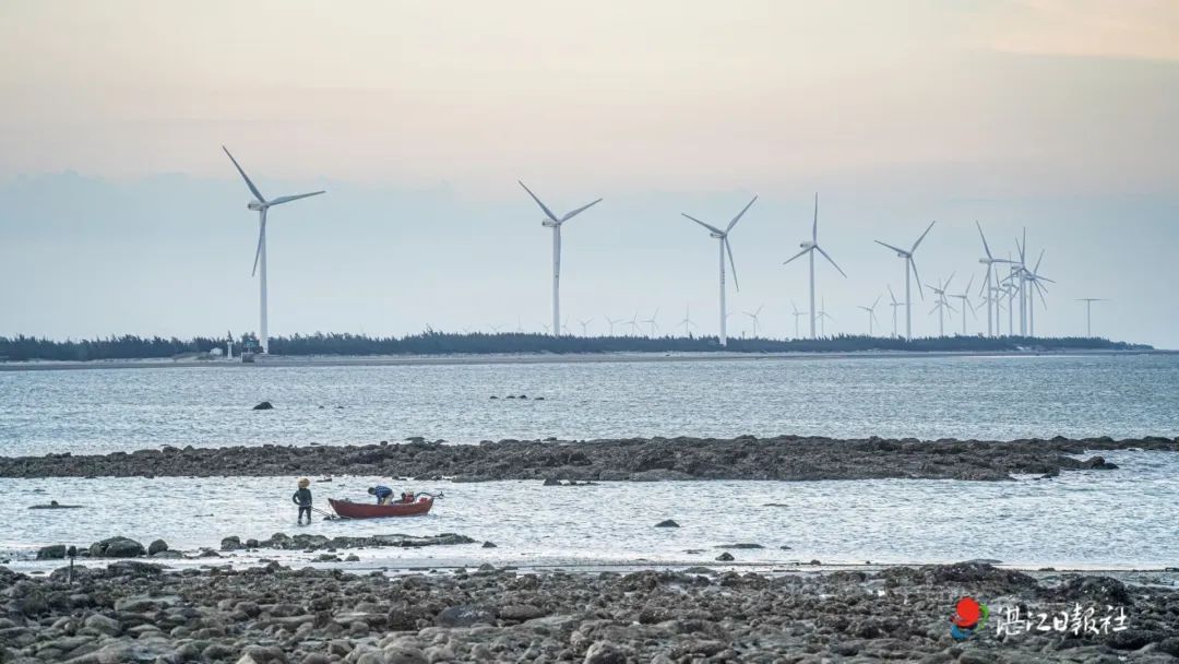 徐闻外罗海岸边,一座座超百米“大风车”矗立海上,一面面巨型叶片迎风转动,源源不断输送着电能。