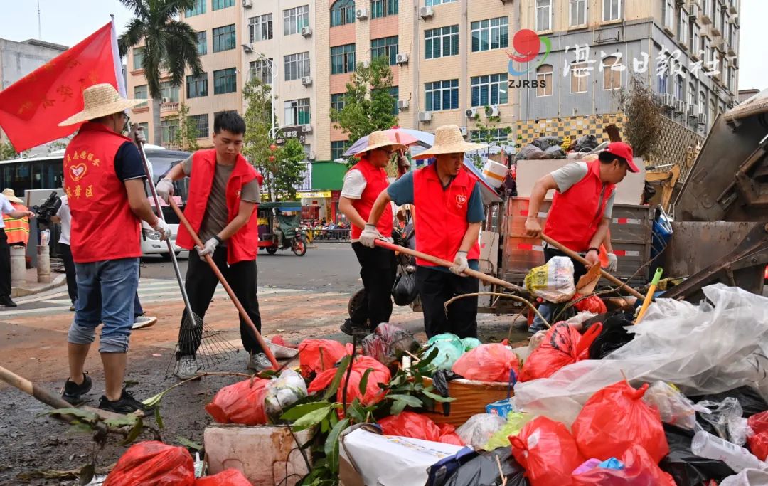 9月9日傍晚,徐闻县城,麻章区党员干部志愿者在清理垃圾和倒伏路树。