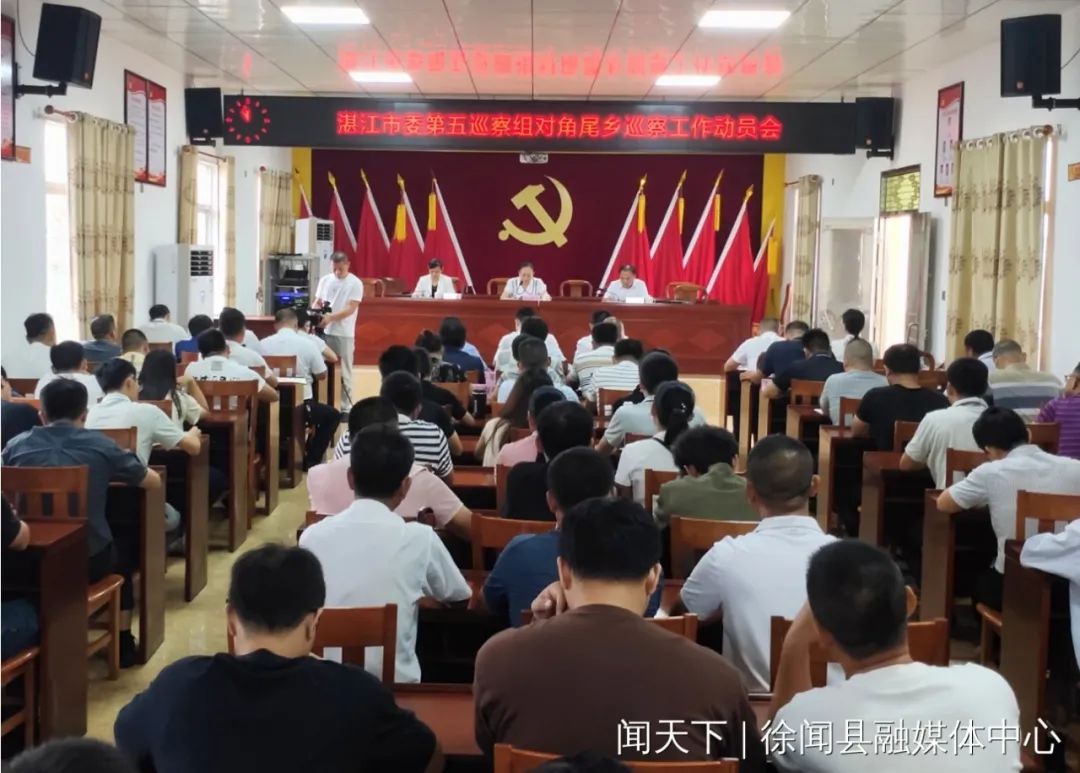湛江市委第五巡察组提级巡察小组组长吴魁召、县委巡察办副主任陈嘉、县委“百千万工程”指挥办常务副主任林肯;湛江市委第五巡察组其他同志;角尾乡全体干部职工、村(社区)党组织书记、七所八站负责人等参加会议。