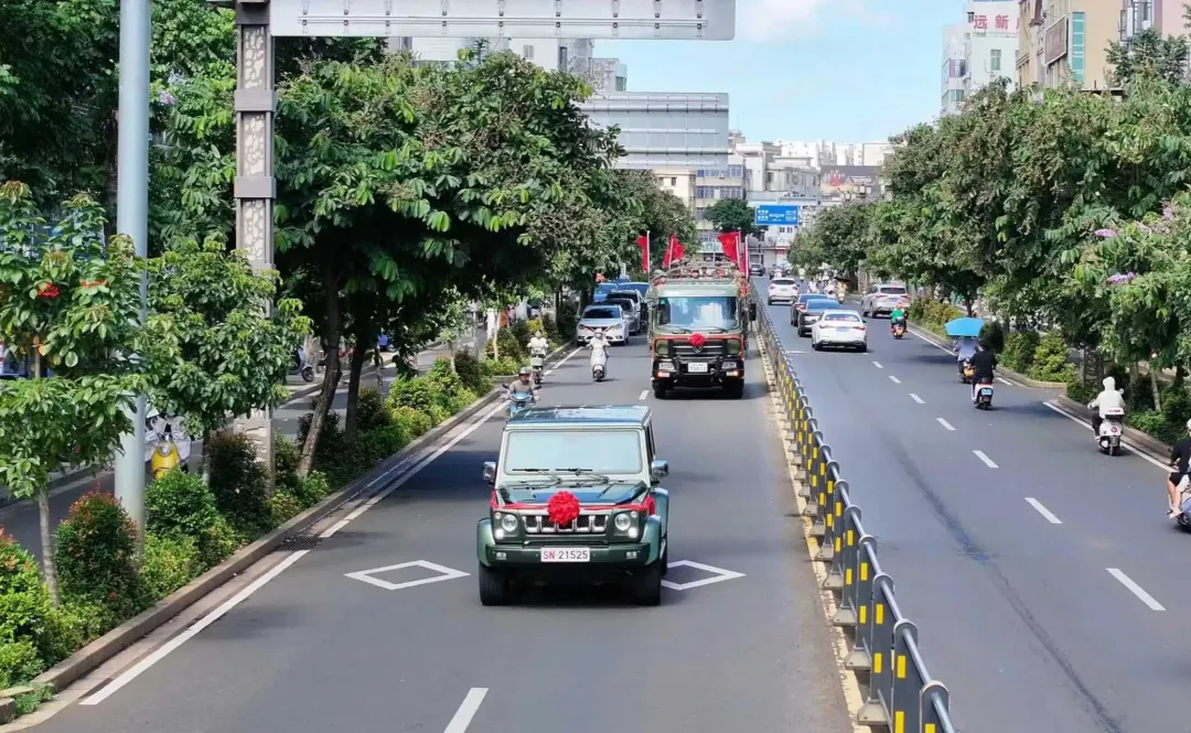 随后,新兵们登上巡游车辆。巡游队伍从文化广场出发,沿着红旗二路、德新一路等主干道缓缓前行。沿途站满了自发前来送行的市民,他们挥舞国旗,用掌声和欢呼声表达对子弟兵的祝福。