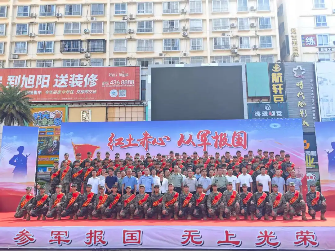 红旗飘扬,锣鼓喧天,百余名徐闻好儿郎肩戴红花、背负使命,即将开启军旅新征程。