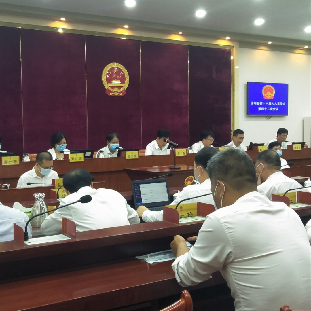 4月23日上午,徐闻县第十六届人大常委会第四十三次会议在县人大常委会会议宝召开。徐闻县人大常委会组成人员出席会议,县委常委、统战部长欧阳光仅,县监委委员、法检“两长”,县委组织部、县人大机关副科以上领导列席会议,各乡镇(街道)人大主席(主任)、人大办主任及部分人大代表通过在线交流平台远程列席会议。县人大常委会党组书记、主任李逸主持会议。