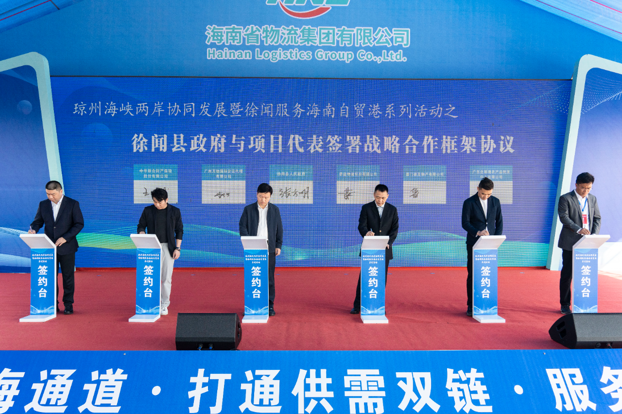 12月12日上午,琼州海峡两岸协同发展暨徐闻服务海南自贸港系列活动在徐闻县国际物流园举行,该活动是在广东省农业农村厅、海南省农业农村厅共同指导下,由徐闻县委、县政府主办,海南省物流集团承办的一次以“共建跨海通道·打通供需双链·服务自贸港区”为主题的大型项目签约启动仪式。广东、海南两省有关部门领导,湛江、海口两市有关领导同志以及京东集团、海南顺丰速运有限公司等签约企业代表受邀出席本次活动。