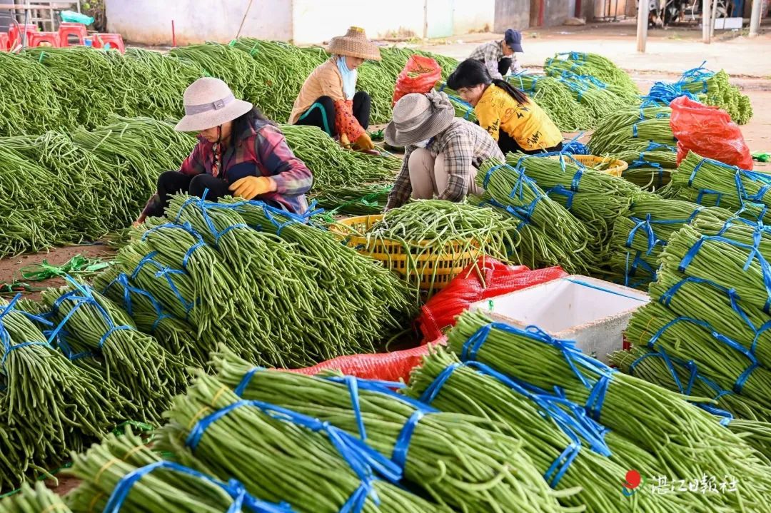 北运菜上市渐渐进入了高峰期。11月9日,记者走进徐闻县迈陈镇瓜菜收购点,10余个工人正在忙着整理分拣韭菜,另一批工人将韭菜打包装车。