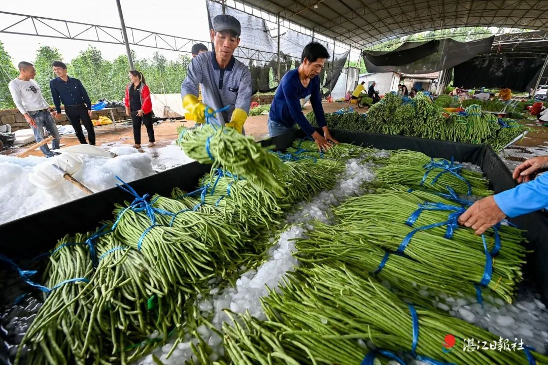 工人为豆角作降温处理。