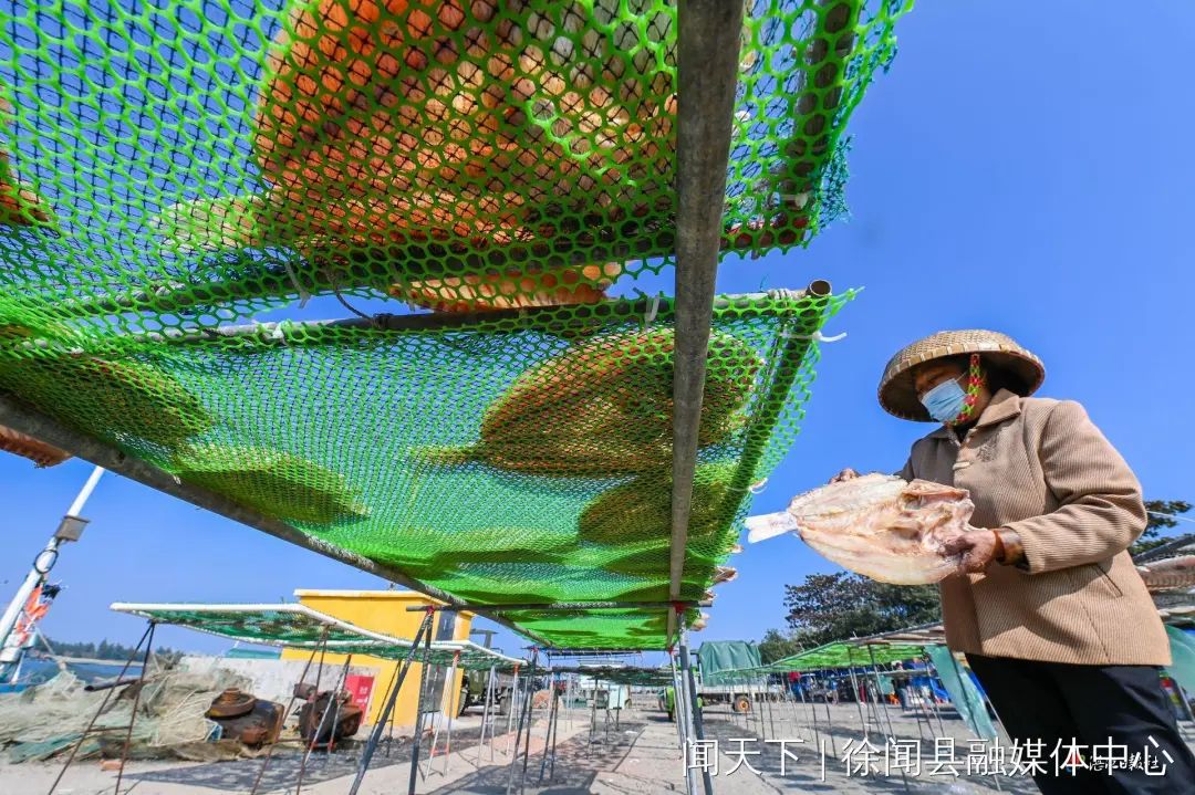 “这一阵正是晒鱼的好时候,今天主要晒了些本地的金鲳鱼,还有黄花鱼等。”正摆放金鲳鱼干的渔民刘姨说,这里的渔民几乎家家户户都晒鱼,一部分自己食用,一部分对外销售。每年这个时候,干晒鱼产品吸引了各地的客商前来预约订购,成为当地村民的创收来源之一。