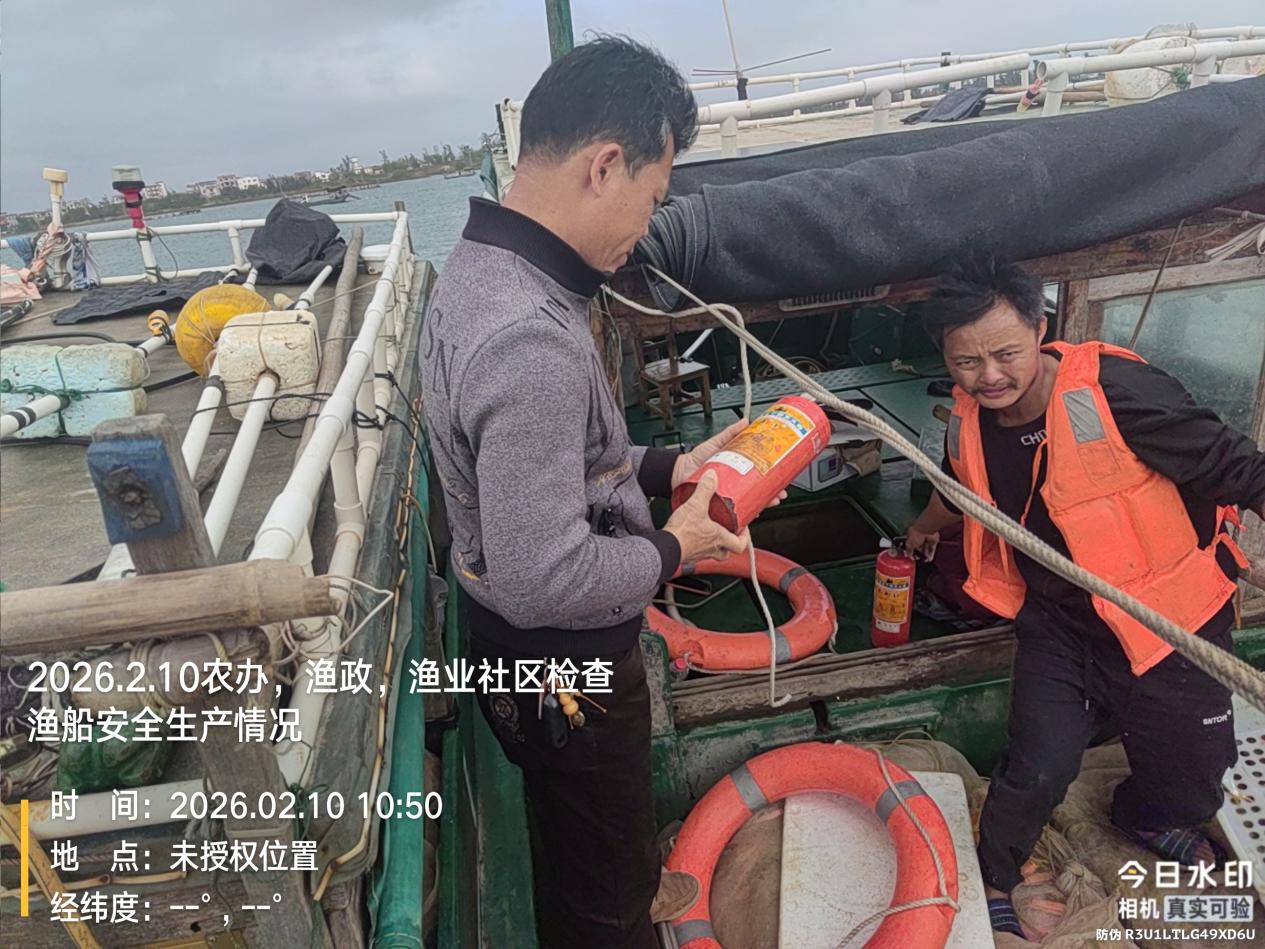 为确保2026年春节(农历丙午马年)期间我镇渔业安全生产形势持续稳定,坚决防范和遏制各类安全事故发生,让广大渔民群众度过一个平安、祥和、欢乐的新春佳节,2026年2月10日,锦和镇农业农村办公室牵头,联合外罗渔业社区、徐闻县海洋综合执法大队渔政中队,对我镇外罗渔港的消防设施及在港乡镇渔船、国库渔船开展了一次全面的节前安全生产联合大检查。
