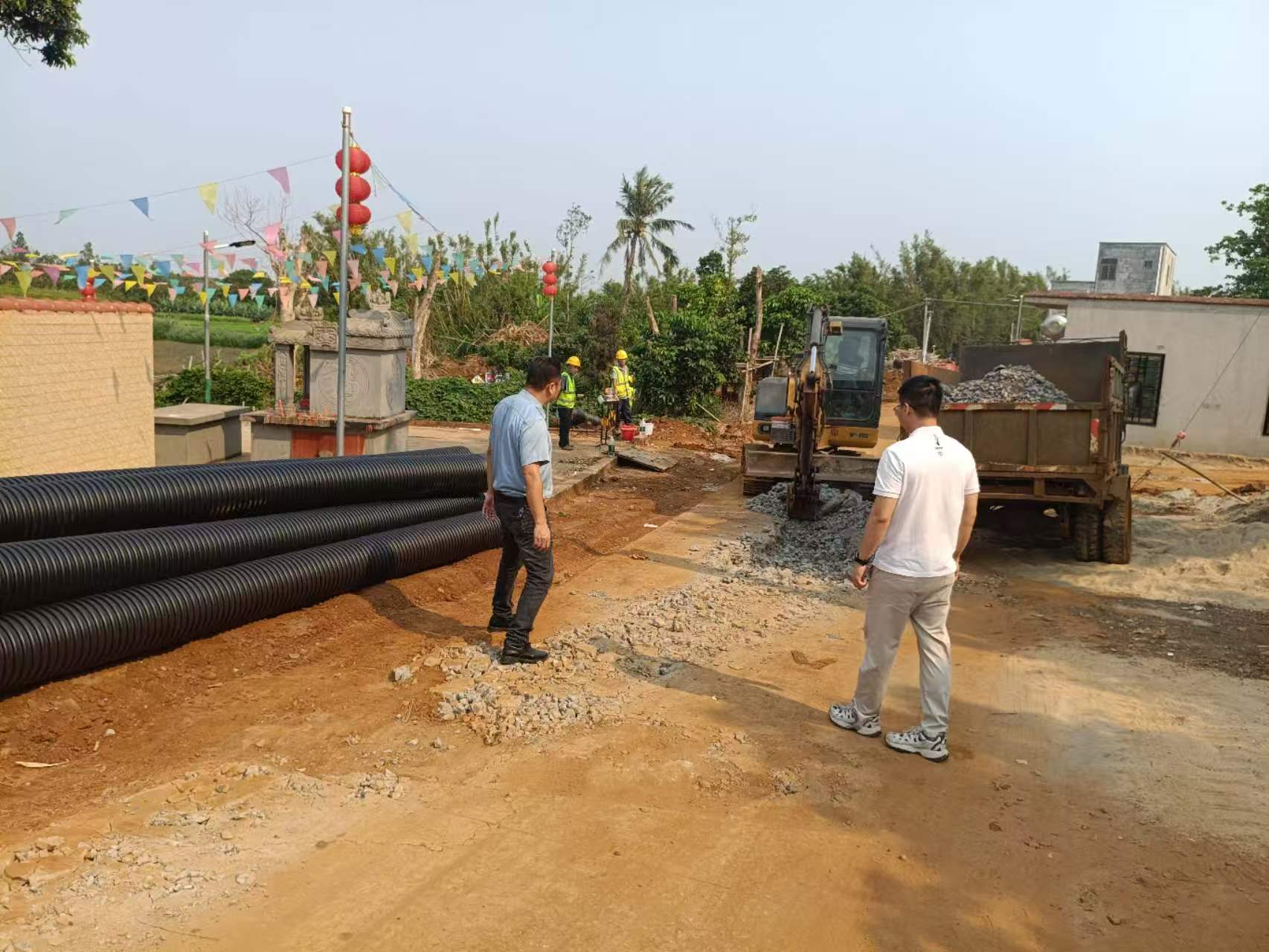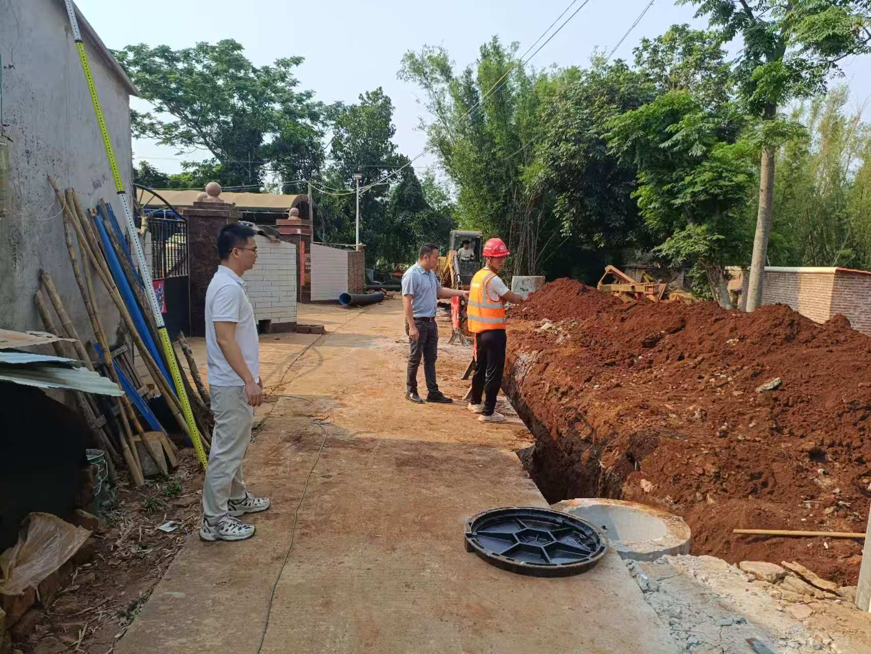 陈英表副镇长带队检查大埚农场生活污水处理设施建设情况,副镇长强调,生活污水处理设施建设事关农村人居环境改善,要紧盯时间节点,严把工程质量关,确保设施早日建成投用,切实提升农场生活污水收集处理能力,助力美丽乡村建设。
