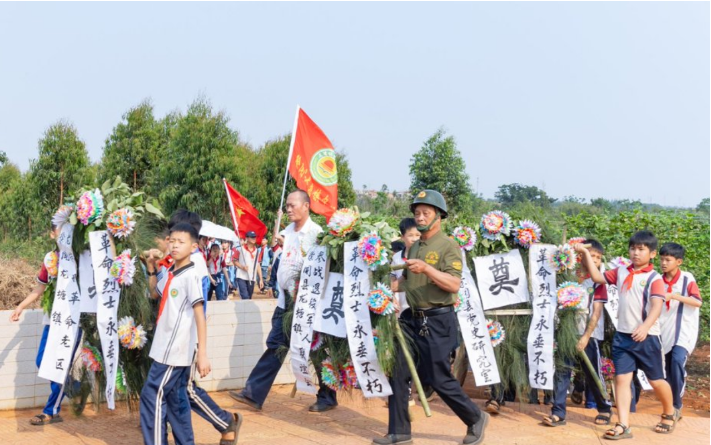 默哀结束后,龙塘镇政府代表、龙塘镇中心小学代表、龙塘镇参战退役军人联谊会代表、四野湛江后代联谊会代表先后发言。他们深情追忆烈士们的英雄事迹,表达继承遗志、赓续红色血脉的坚定决心,并表示将不忘初心、牢记使命,立足岗位、努力奋斗。