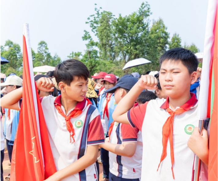 全体少先队员举起右拳庄严宣誓,表示将继承先烈遗志,刻苦学习,时刻准备着为共产主义事业贡献力量。 少先队员们还合唱了《中国少年先锋队队歌》,全体人员共同高唱《歌唱祖国》,用嘹亮的歌声表达对革命先烈的崇敬之情和对伟大祖国的美好祝愿。