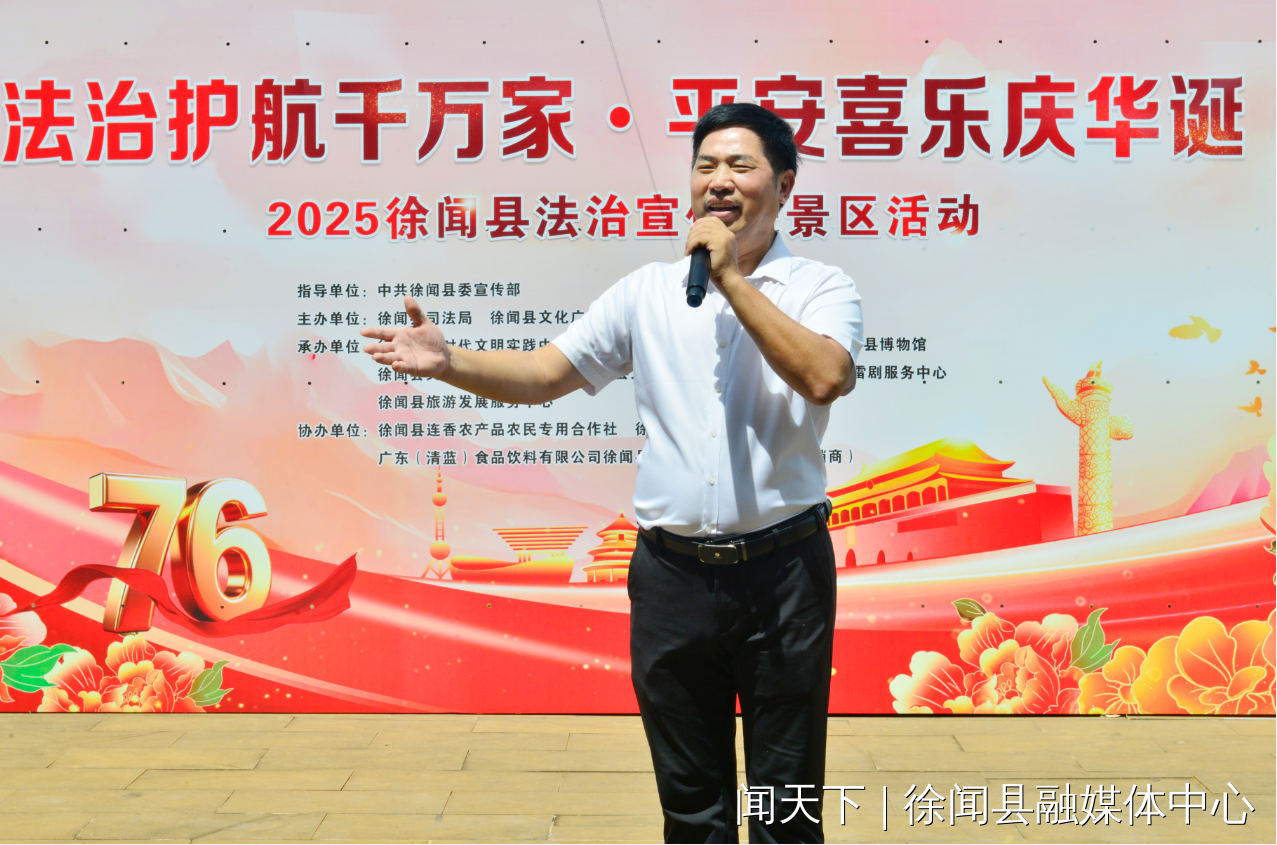 10月1日,在举国欢庆新中国成立76周年的喜庆日子里,以“法治护航千万家·平安喜乐庆华诞”为主题的2025年徐闻县法治宣传进景区活动,在曲界镇“菠萝的海”景区精彩上演。此次活动将法治元素与旅游体验、地方文化深度融合,为节日增添了独特的法治韵味,也为游客带来了一场别开生面的普法盛宴。