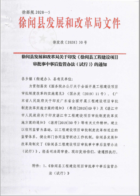 徐闻县工程建设项目审批事中事后监管办法(试行)