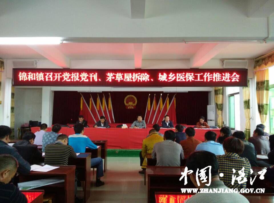 12月3日,锦和镇召开政府工作推进会议,对党报党刊征订、无人居住茅草房拆除、城乡医保工作作了进一步部署。会议通报了各项工作的进度,并要求各村各办要明确工作思路,探索工作方法,团结一致,迎难而上。党委书记陈光泽强调,要加强基层干部政治教育,积极发动干部、群众征订党报党刊;要加强生态文明村建设,完成无人居住茅草房拆除任务;要加强落实恵农政策,确保每家每户享受城乡医疗保险。