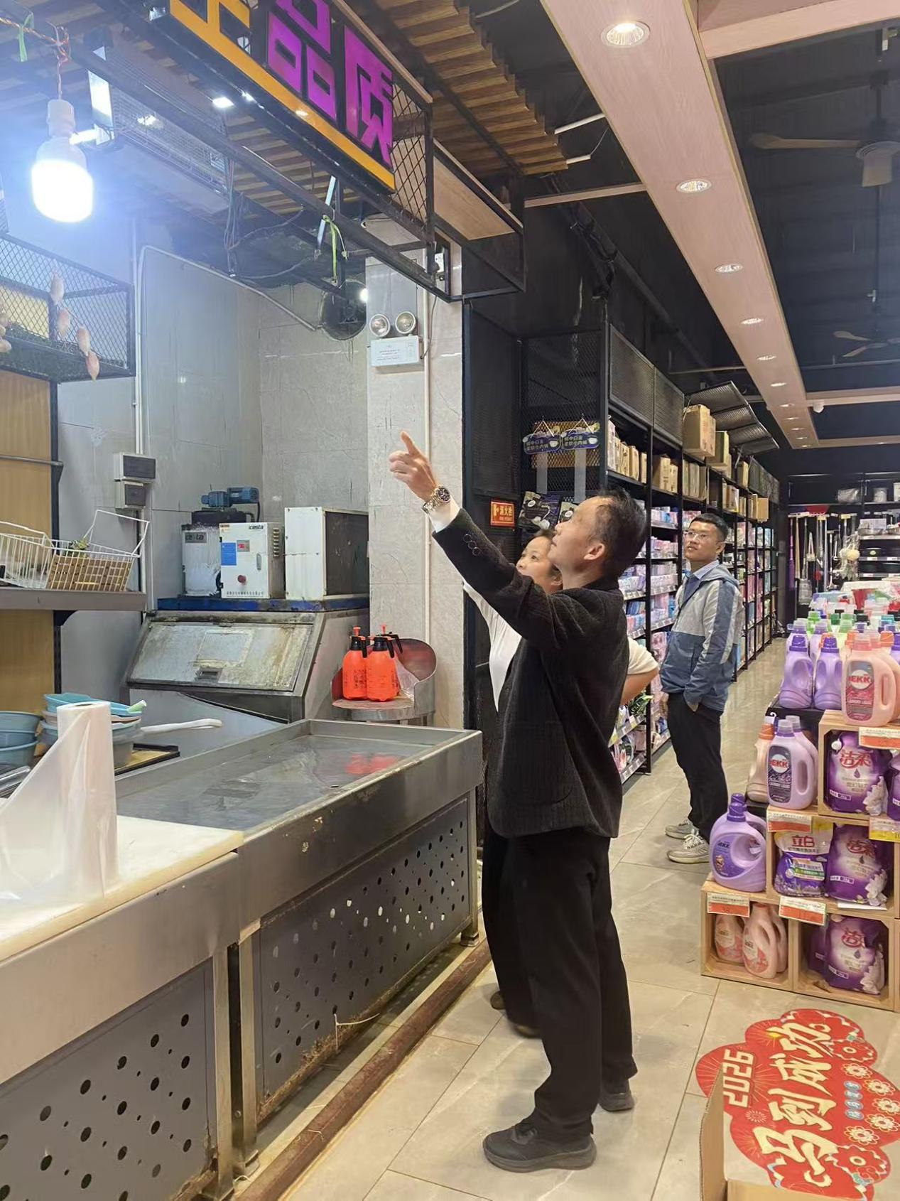 此次检查重点走访辖区内大型超市,详细核查节前安全检查落实情况,重点检查是否违规住人、冷库是否做好安全防护措施,同时核查消防设施完好性、疏散通道畅通度等关键环节,逐项查验台账、实地排查点位,督促超市压实主体责任,及时整改各类隐患。