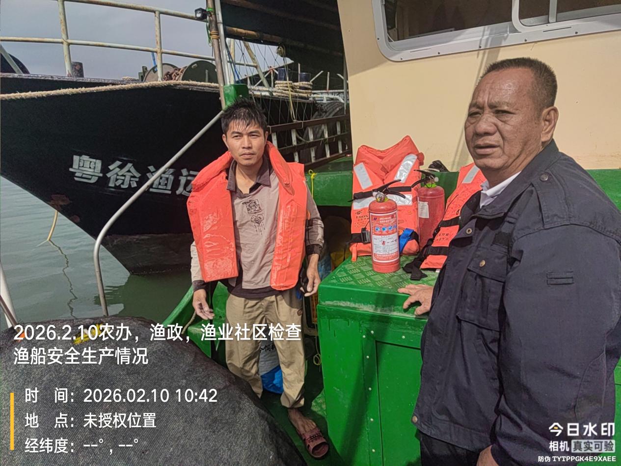 为确保2026年春节(农历丙午马年)期间我镇渔业安全生产形势持续稳定,坚决防范和遏制各类安全事故发生,让广大渔民群众度过一个平安、祥和、欢乐的新春佳节,2026年2月10日,锦和镇农业农村办公室牵头,联合外罗渔业社区、徐闻县海洋综合执法大队渔政中队,对我镇外罗渔港的消防设施及在港乡镇渔船、国库渔船开展了一次全面的节前安全生产联合大检查。