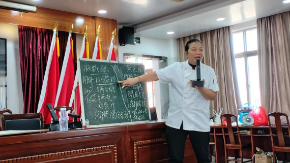 此次培训特邀湛江市技师学院经验丰富的专业讲师黄老师现场授课。课堂上,黄老师以核桃酥基础制作工艺为切入点展开教学,围绕原料精准配比、搅拌手法技巧、烘焙温度调控及时间把控等关键环节,进行细致讲解与耐心示范。参训学员全神贯注听讲记录,踊跃参与实操练习,培训现场学习氛围浓厚。