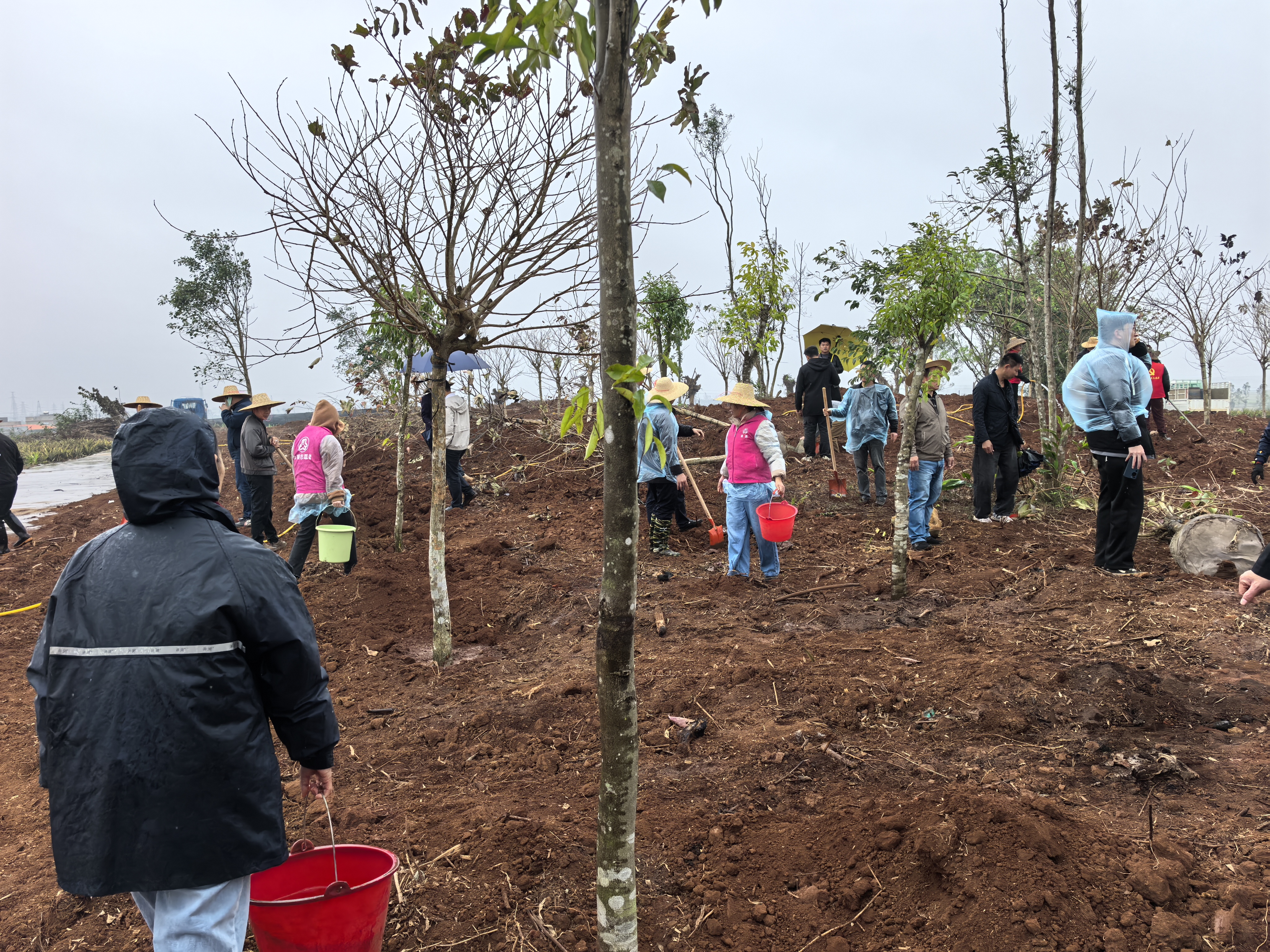 这次植树活动参与人员达170人次,共种植树苗310株,分别有大叶紫薇、菩提、香樟、沉香等树种。在植树现场,黄旭带领干部群众分工合作,有的挖坑,有的扶苗,有的培土,有的浇水,大家紧密配合,干劲十足。经过一番辛勤劳动,为这片红土地增添了新绿,成为当地一道亮丽的风景。