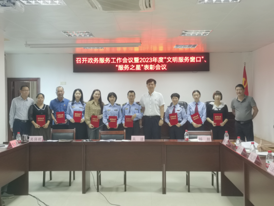 2024年4月11日徐闻县在县行政服务中心三楼大会议室召开政务服务工作会议暨2023年度“文明服务窗口”、“服务之星”表彰会议。会上,评选了3名“文明服务窗口”以及10名“服务之星”,徐闻县市场监督管理局行政许可与登记注册窗口获得“2023年度行政服务大厅文明服务窗口”,王上坤、李玲玲、林纺三位同志获得“2023年度行政服务大厅服务之星”,这三位同志连续两年获得该项殊荣。徐闻县市场监督管理局自2019年起连续五年获得“文明服务窗口”。