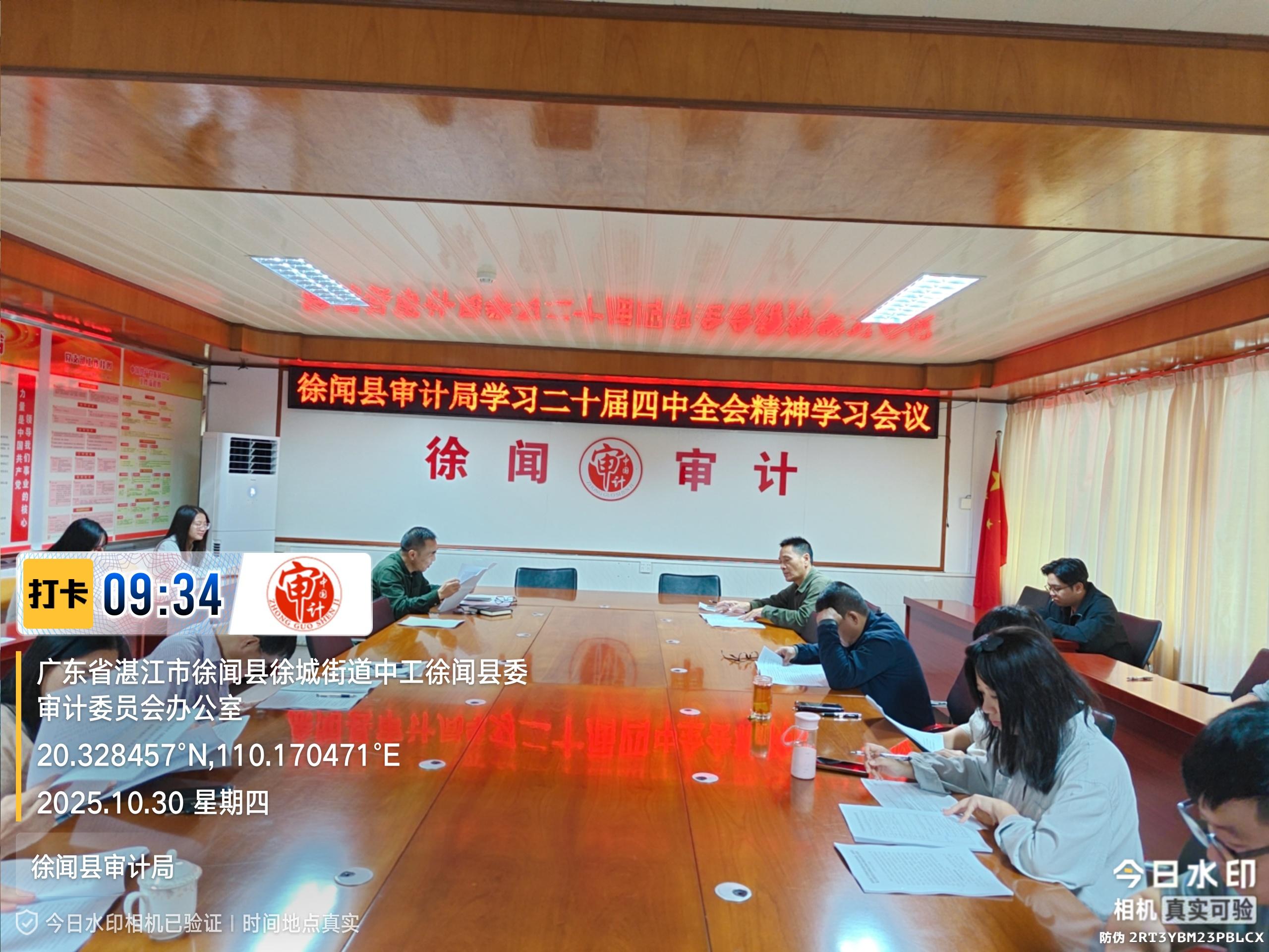 会议指出,党的二十届四中全会是在向第二个百年奋斗目标进军的新征程上举行的一次十分重要的会议。习近平总书记的重要讲话和全会通过的《中共中央关于制定国民经济和社会发展第十五个五年规划的建议》,准确把握“十五五”时期党和国家事业发展所处历史方位,对未来5年发展作出顶层设计和战略擘画,指导方针科学精准,主要目标清晰明确,任务举措求真务实,体现了以习近平同志为核心的党中央团结带领全党全国各族人民续写经济快速发展和社会长期稳定两大奇迹新篇章、奋力开创中国式现代化建设新局面的历史主动,必将对党和国家事业发展产生重大而深远的影响。 会议要求,全体审计干部要把学习好贯彻好全会精神作为当前和今后一个时期的重大政治任务,充分认识全会的重大意义,深刻领会全会关于“十五五”时期经济社会发展必须遵循的“六个坚持”原则,自觉把思想和行动统一到党的二十届四中全会精神上来,更加深刻领悟“两个确立”的决定性意义,更加自觉增强“四个意识”、坚定“四个自信”、做到“两个维护”,进一步增强推进中国式现代化建设的信心决心。要紧扣“十五五”经济社会发展重点任务,聚焦现代化产业体系、高质量发展、乡村全面振兴、重点领域改革、保障和改善民生等方面,找准找实审计监督切入点和落脚点,全面深入谋划、科学规范实施2026年审计项目,切实把全会精神落实到各项审计工作中。要加快推进2025年度审计项目实施,持续推进“广东审计科学规范提升三年行动计划”落实,加强审计队伍自身建设,做深做实研究型审计,不断提升审计工作的科学化、规范化水平,为徐闻经济社会高质量发展贡献审计力量。