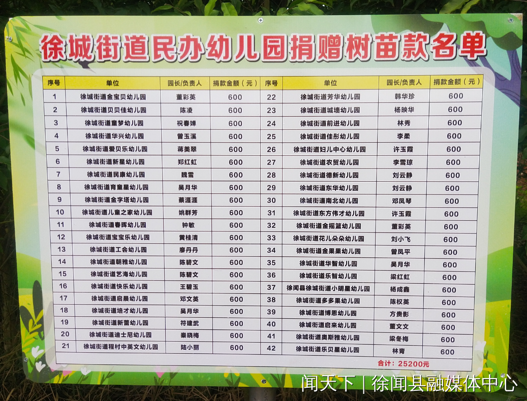 据悉,本次“教育林”建设有42家民办幼儿园积极响应,共计捐赠树苗款2.52万元。