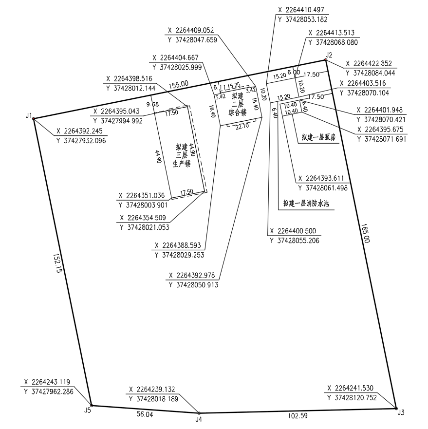 建设规模:框架结构,建筑总面积3146.84平方米;其中综合楼二层,面积780.66平方米;生产楼三层,面积2144.58平方米;消防泵房一层,面积66.56平方米;消防水池一层,面积155.04平方米。