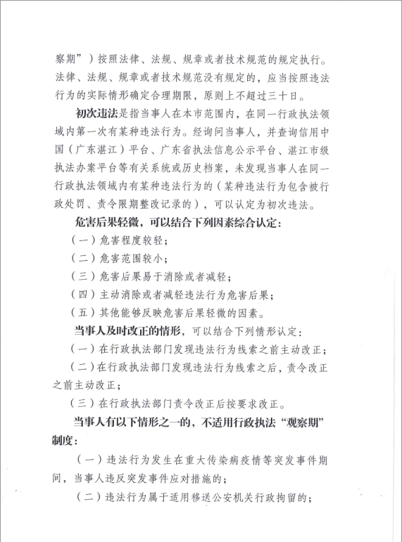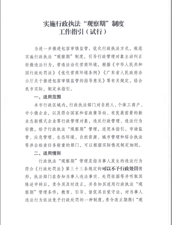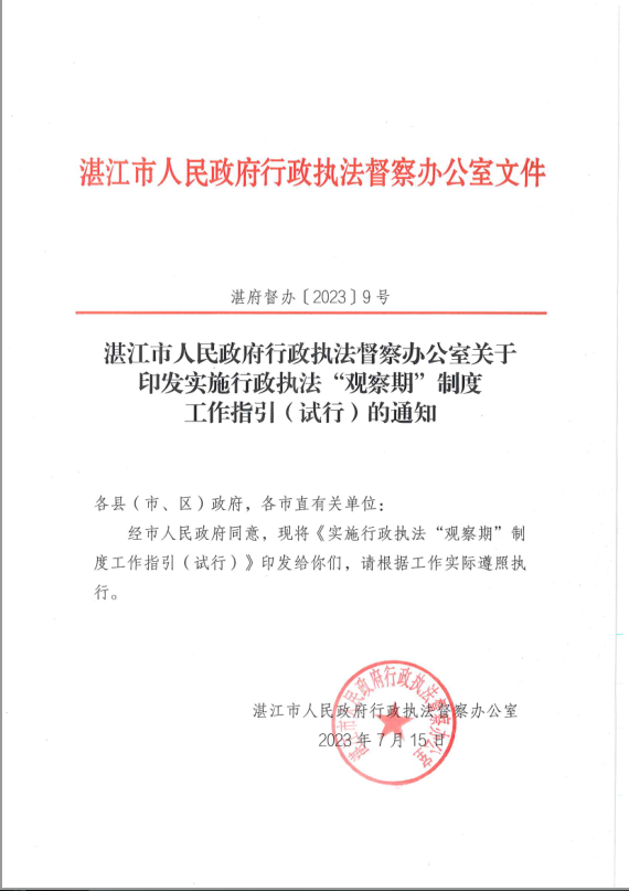 关于转发《湛江市实施行政执法“观察期”制度工作指引(试行)》的通知