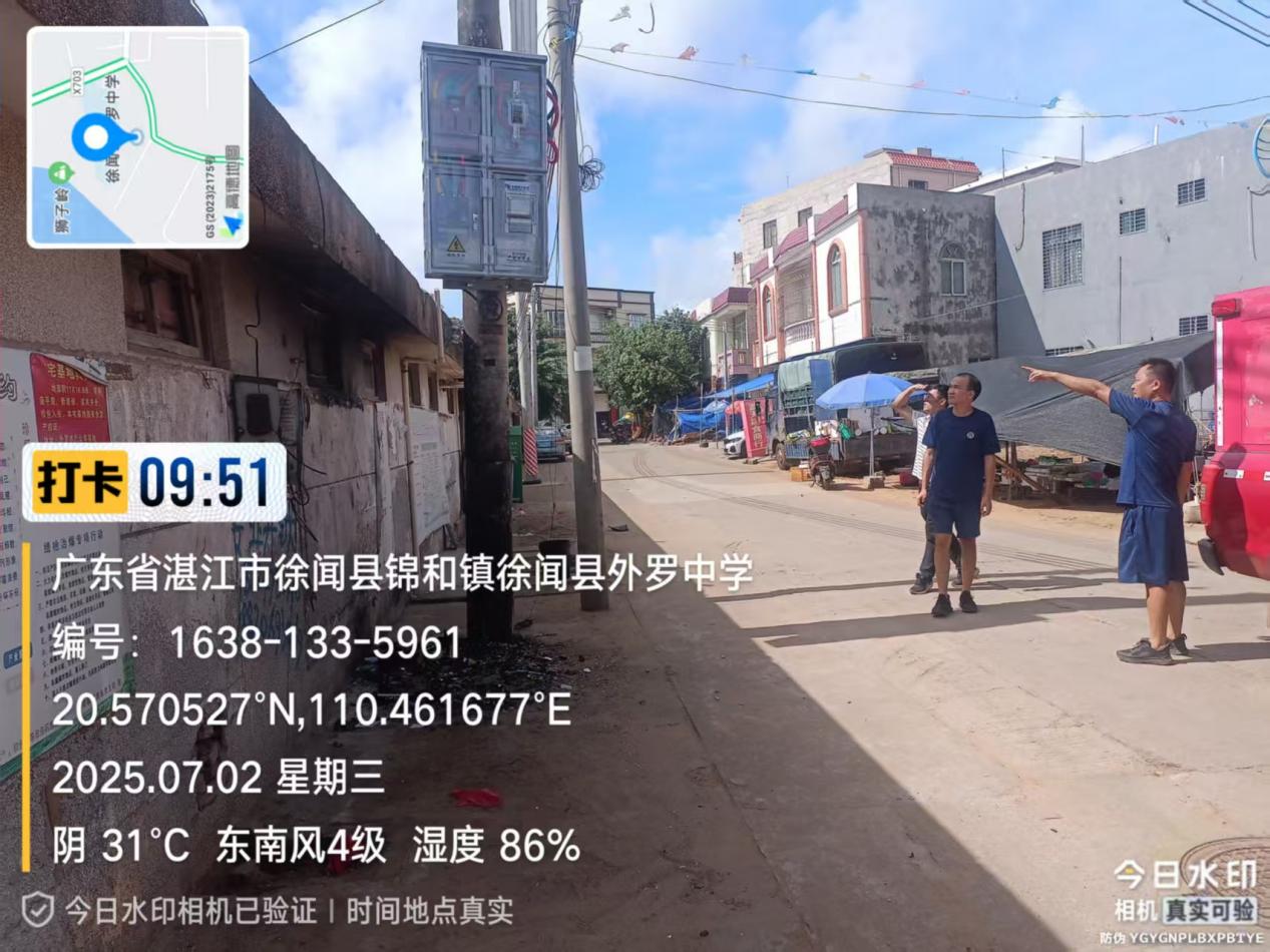 为进一步落实安全生产责任,防范电气火灾隐患。2025年7月2日,锦和镇应急办王高金主任带队开展消防安全检查工作,重点组织专职消防员对镇域内重点场所开展电表电线检查工作。