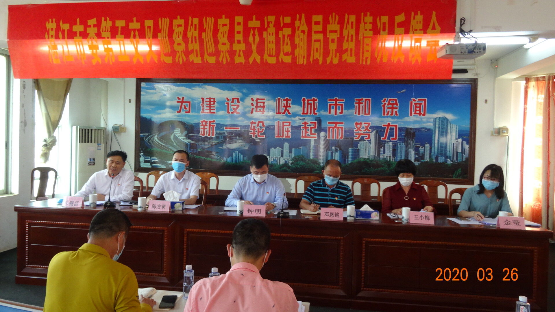 2020年3月26日,在我局五楼会议室召开十一届市委第四轮县级交叉巡察徐闻县交通运输局意见反馈会。会上,市委第五交叉巡察组组长邓恩铭同志向我局党组进行了巡察反馈,局党组书记、局长邓锡昌同志做表态发言。会议由局党组书记、局长邓锡昌同志主持,县委常委、组织部长、巡察工作领导小组副组长钟明同志出席会议并讲话。
