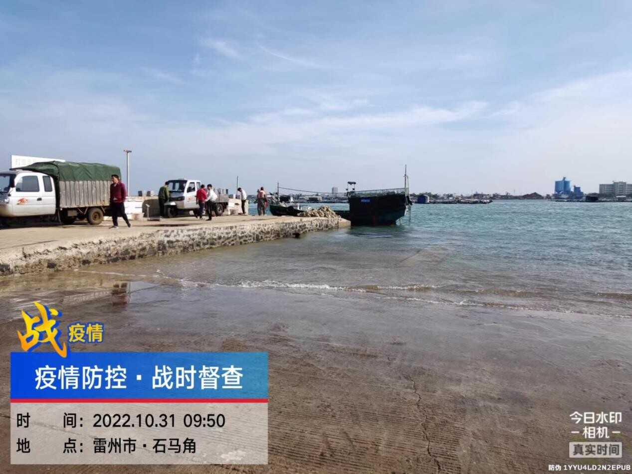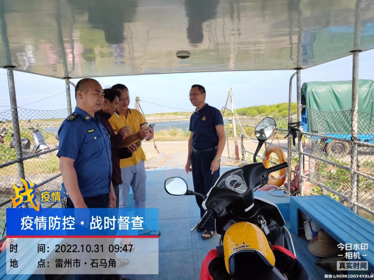 徐闻县交通运输局执法人员到石马渡口进行安全检查,并要求渡船按规定时间停运回港避风