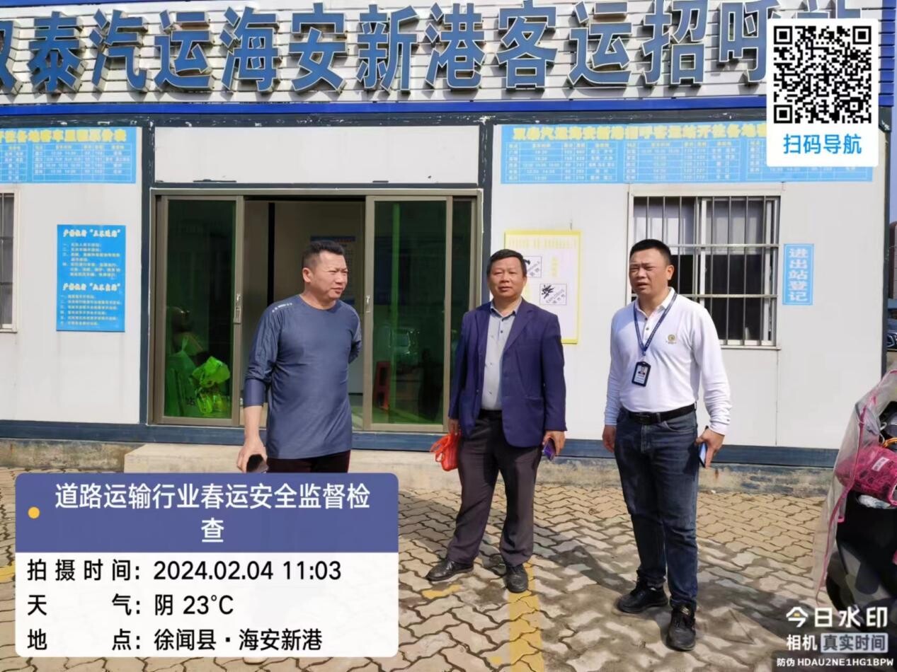 二、加强春运期间安全检查。2024年2月4日上午,县交通运输局综合运输股负责人带队到徐闻县和谐客运有限公司南山客运站(招呼站)、双泰汽运海安新港客运招呼站检查2024年道路运输行业春运安全工作情况。要求各招呼站需配备手持安检仪,督促入站车辆在车厢醒目位置公示驾驶员姓名、从业资格证号以及交通运输服务监督电话、票价和里程表,认真做好安全生产相关工作,保障人民群众平安、畅顺、满意出行。