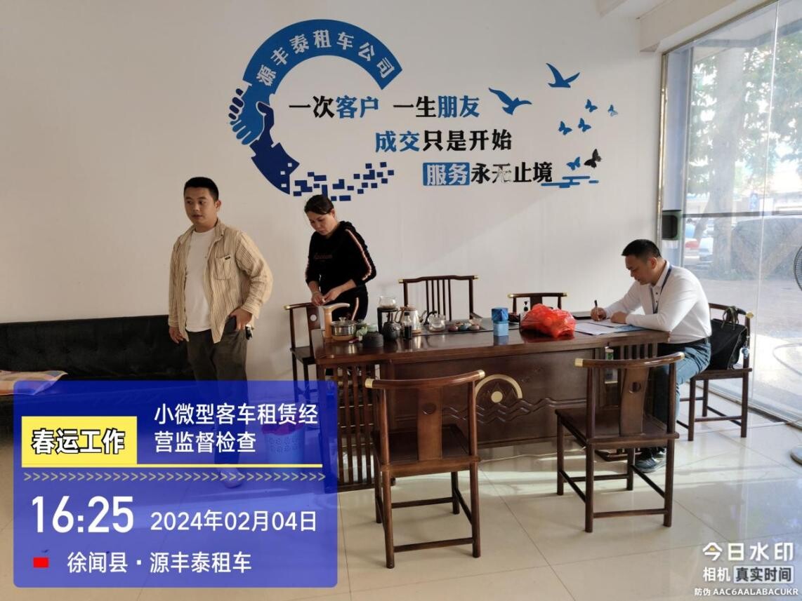 2024年2月4日下午,县交通运输局综合运输股负责人带队到源丰泰租车、鸿武轿车租赁行等辖区内小微型客车租赁公司开展2024年综合运输春运安全检查。
