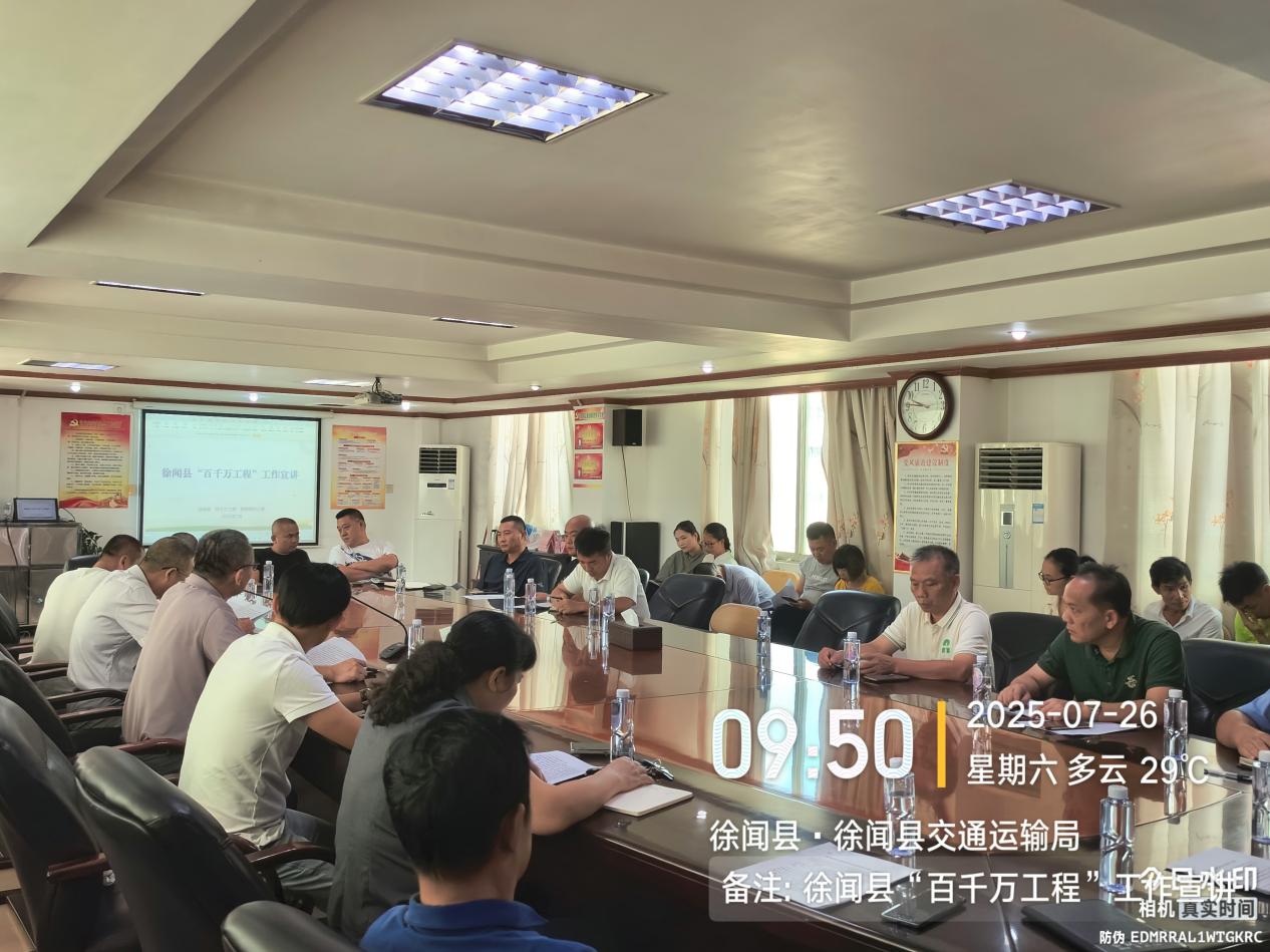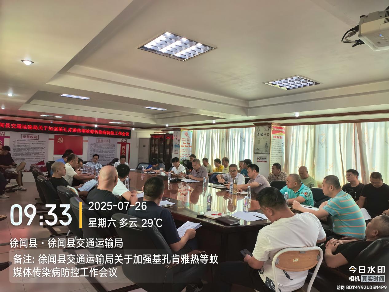2025年7月26日上午九时半在局三楼会议室召开基孔肯雅热等蚊媒传染病防控工作暨徐闻县“百千万工程”工作宣讲会议。局党组成员、副局长李仁南主持会议,各股室、局属事业单位、县公路事务中心、地方公路局、道路运输企业、港航运输企业、在建工程负责人参加会议。