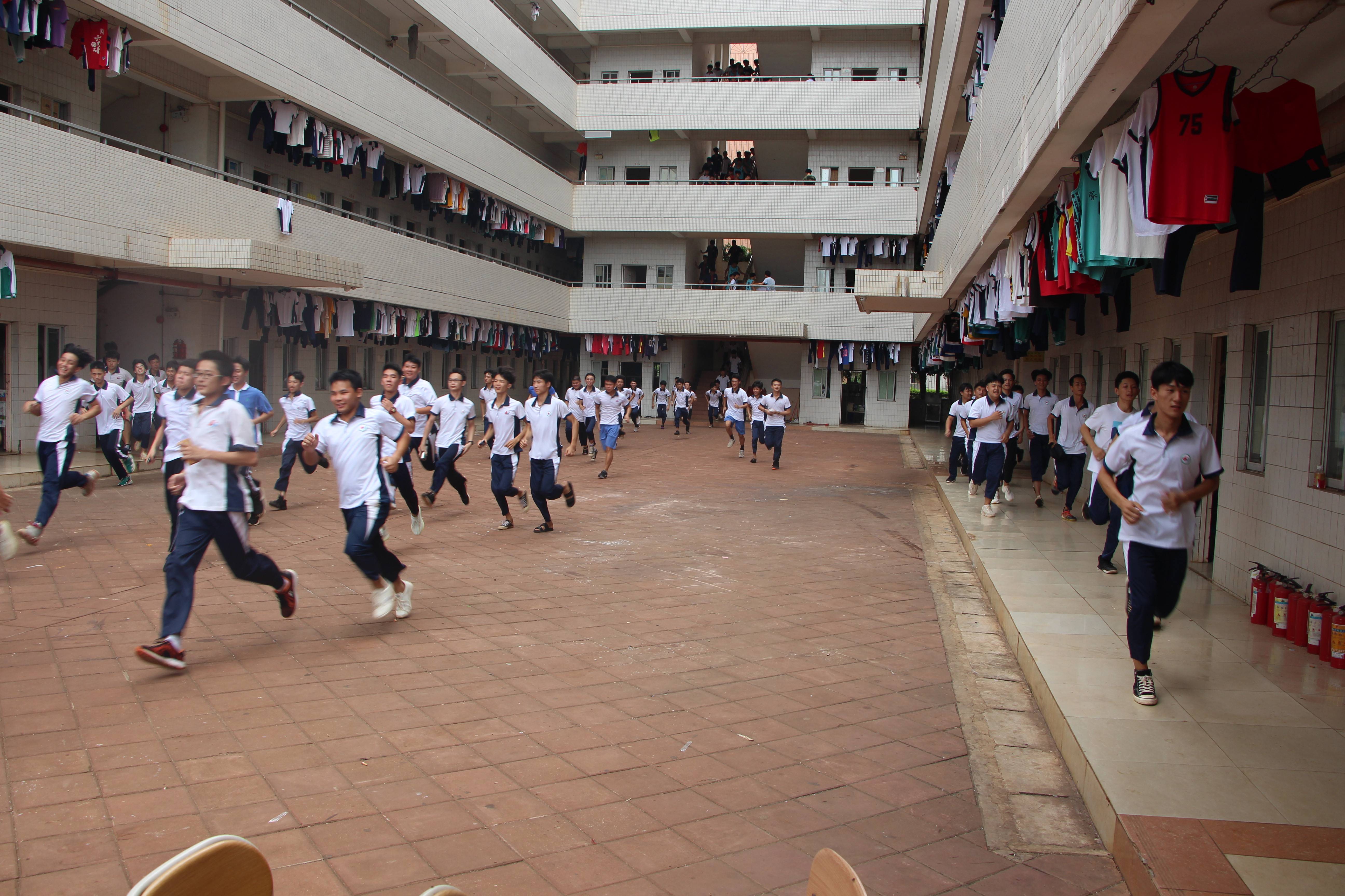 徐闻县实验中学于2019年 6月24日下午14:15举行了学生宿舍防灾应急疏散演练