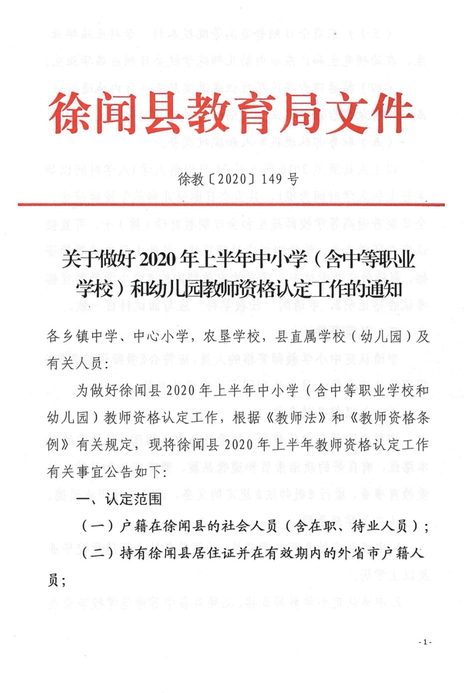 徐闻县关于做好2020年上半年中小学(含中等职业学校)和幼儿园教师资格认定工作的通知