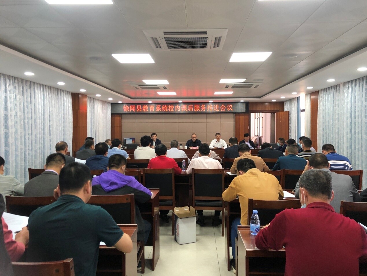 为全面贯彻习近平新时代中国特色社会主义思想和党的十九大精神,严格落实党的教育方针,进一步满足新时代广大家长对中小学生校内课后服务的迫切需求,全面培养学生兴趣、促进学生健康发展、帮助家长解决按时接孩子放学困难、减轻家长校外托管经济负担,切实做好徐闻县县校内课后服务工作。11月30日下午,在县政府会议中心三楼4号会议室召开了教育系统校内课后服务推进会议。会议由教育局林望晓局长主持,县委常委林豪同志出席会议并讲话。参加会议的有县教育局相关股室负责人、相关工作人员及开展课后服务活动的52所义务教育学校校长。