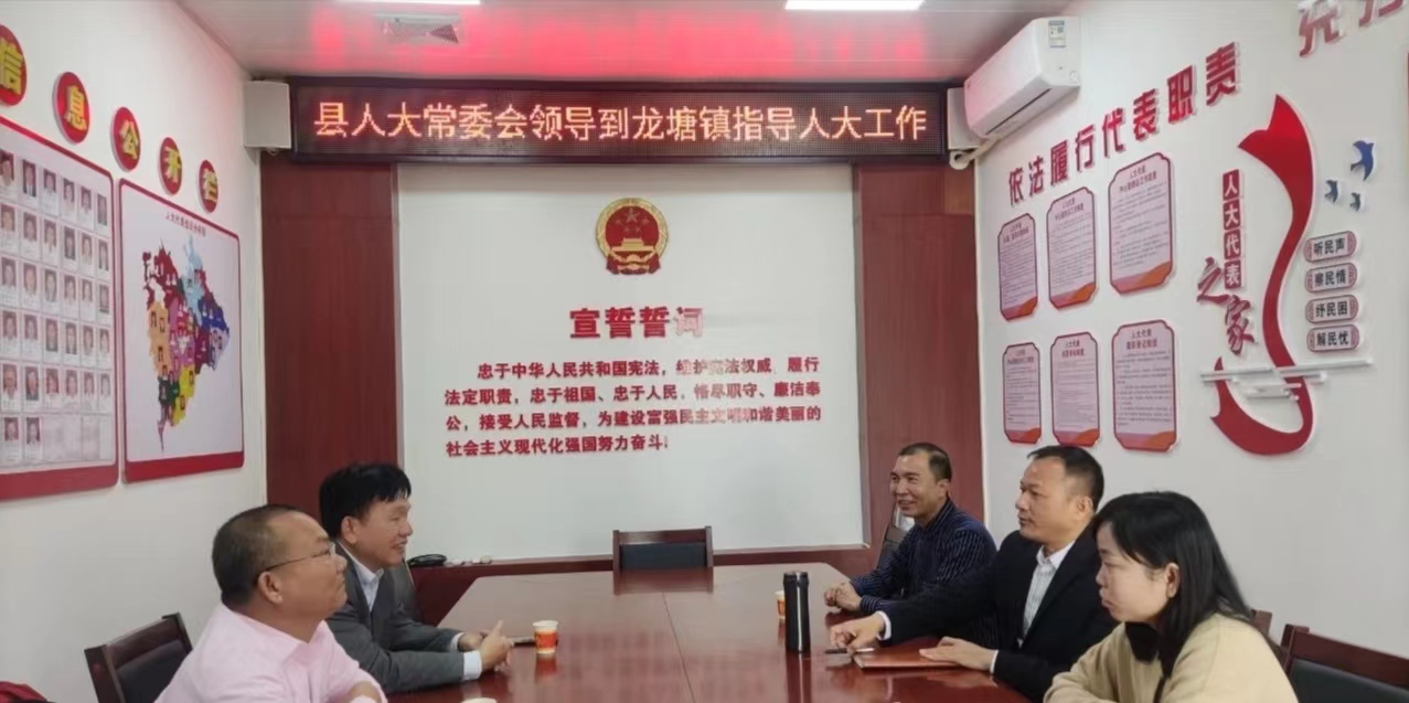 1月31日,县人大常委会副主任周开儒一行到龙塘镇调研指导人大工作,龙塘镇镇长文泽献、人大主席关志明陪同。指导组先后到镇人大代表中心联络站和木棉、赤农村人大代表联络站实地查看建设及运行情况、听取工作汇报等多种方式,了解龙塘镇人大工作,并召开座谈会对龙塘镇2023年人大工作提出宝贵的意见建议。