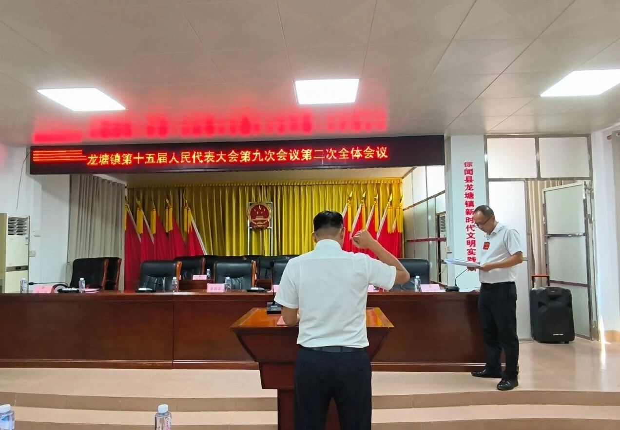 会议随后依法进行选举。经与会代表充分酝酿、讨论,以无记名投票方式,选举游堪劲同志为龙塘镇人民代表大会主席。镇党委书记梁涛为游堪劲同志颁发当选证书。新当选的镇人大主席游堪劲同志依法进行了宪法宣誓。
