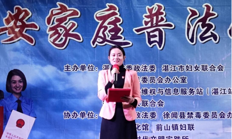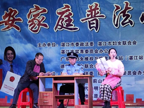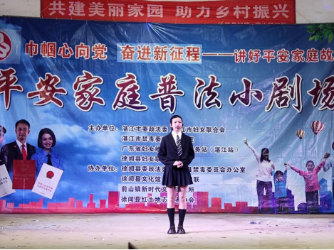 为加强妇女群体的法治宣传教育,提高广大妇女和家庭的平安意识。2月28日晚上,“平安家庭普法小剧场”活动在前山镇下市戏台顺利举行。徐闻县妇联四级调研员蒙婉冰,县妇联主席杨玉凤,县妇联副主席孙淑贞、余小娟,前山镇副镇长、妇联主席劳曼平等出席活动,当地500多名群众前来观看剧场表演。