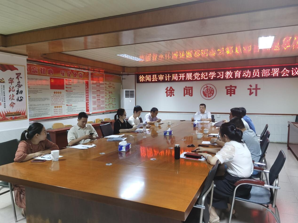 为全面部署落实党纪学习教育工作,推动全面从严治党向纵深发展,4月25日下午,徐闻县审计局组织召开党纪学习教育动员部署会议,传达学习了中央、省委、市委、县委党纪学习教育精神和全县开展党纪学习教育的实施方案,研究部署开展党纪学习教育工作。县审计局党组书记、局长蔡通主持会议并作动员部署。