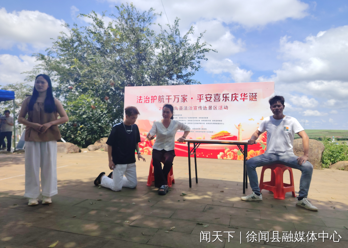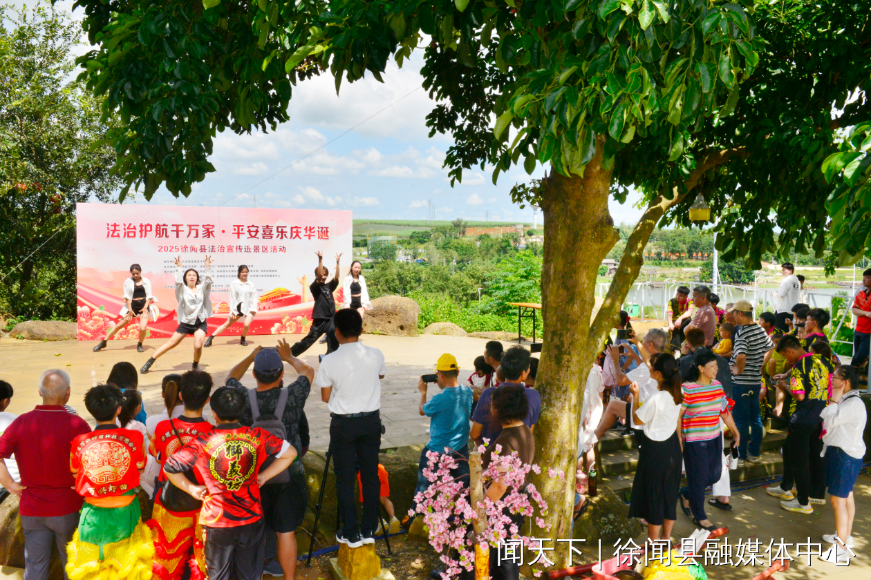 10月1日,在举国欢庆新中国成立76周年的喜庆日子里,以“法治护航千万家·平安喜乐庆华诞”为主题的2025年徐闻县法治宣传进景区活动,在曲界镇“菠萝的海”景区精彩上演。此次活动将法治元素与旅游体验、地方文化深度融合,为节日增添了独特的法治韵味,也为游客带来了一场别开生面的普法盛宴。