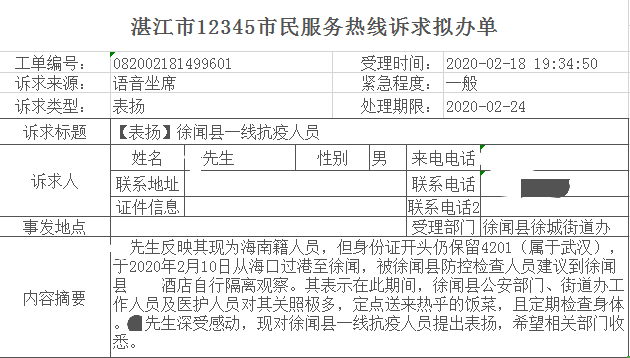 20日,防疫办还收到了一件“特殊”的12345热线拟办单。疫情防控期间,街道不时收到居民群众关于健康登记、活禽贩售、设卡检测之类的投诉,这些诉求都能及时得到处理,但这一份拟办单却与众不同,它不是投诉,而是表扬。