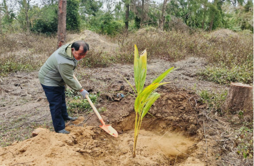 在授课结束后,大家纷纷动手参与,从挖坑、施肥、栽植到浇水,每一个环节都认真对待,确保种植质量。通过实地操作,大家也更加直观地掌握了泰国矮椰子树的种植技术。