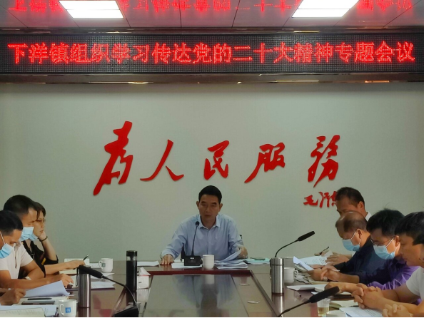 刘学书记强调,全镇上下要切实把思想和行动统一到党的二十大精神上来,在思想、政治上、行动上同党中央保持高度一致,把学习宣传贯彻工作作为当前和今后一个时期的首要政治任务抓紧抓实抓好。一要迅速开展学习贯彻。镇领导班子要坚持先学一步、深学一层,全面系统领会和把握党的二十大精神,要层层跟进抓好传达学习,督促指导各党组织、分管部门按照中央和省、市、县委统一部署要求,组织党员干部认真学习党的二十大精神,深刻领会大会提出的新理念、新思想、新战略。二要精心开展宣传宣讲。镇领导班子要以身作则,深化理论研讨,带头开展宣讲解读、指导督导;各党组织、各部门要精心组织开展多层次、多样化的宣传宣讲,全面推动党的二十大精神进机关、进校园、进企业、进村(社区)、进农村;三要发挥好镇政府门户网站、公众号等平台载体作用,加强媒体正面宣传传播,加快形成宣传党的二十大精神的强大声势和浓厚氛围。四要认真抓好贯彻落实。要学懂学好学透党的二十大精神,紧密地团结在以习近平同志为核心的党中央周围,以党建为抓手,做实做细疫情防控、撂荒耕地复耕复种、殡改工作、社会稳定等工作,全力推动乡村振兴,夯实教育根基,挖掘红色资源源,保障改善民生,加大基础设施建设,努力开创下洋镇发展新局面。