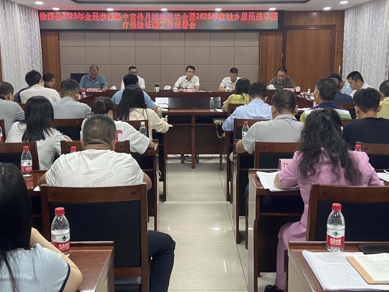 10月11日上午,徐闻县召开2025年全民参保集中宣传月活动启动会暨2026年度城乡居民基本医疗保险征缴工作部署会。会议深入贯彻落实国家及省、市关于全民参保工作的部署要求,全面启动我县集中宣传月活动,并就2026年度城乡居民医保征缴工作进行动员部署。副县长林力出席会议并讲话。