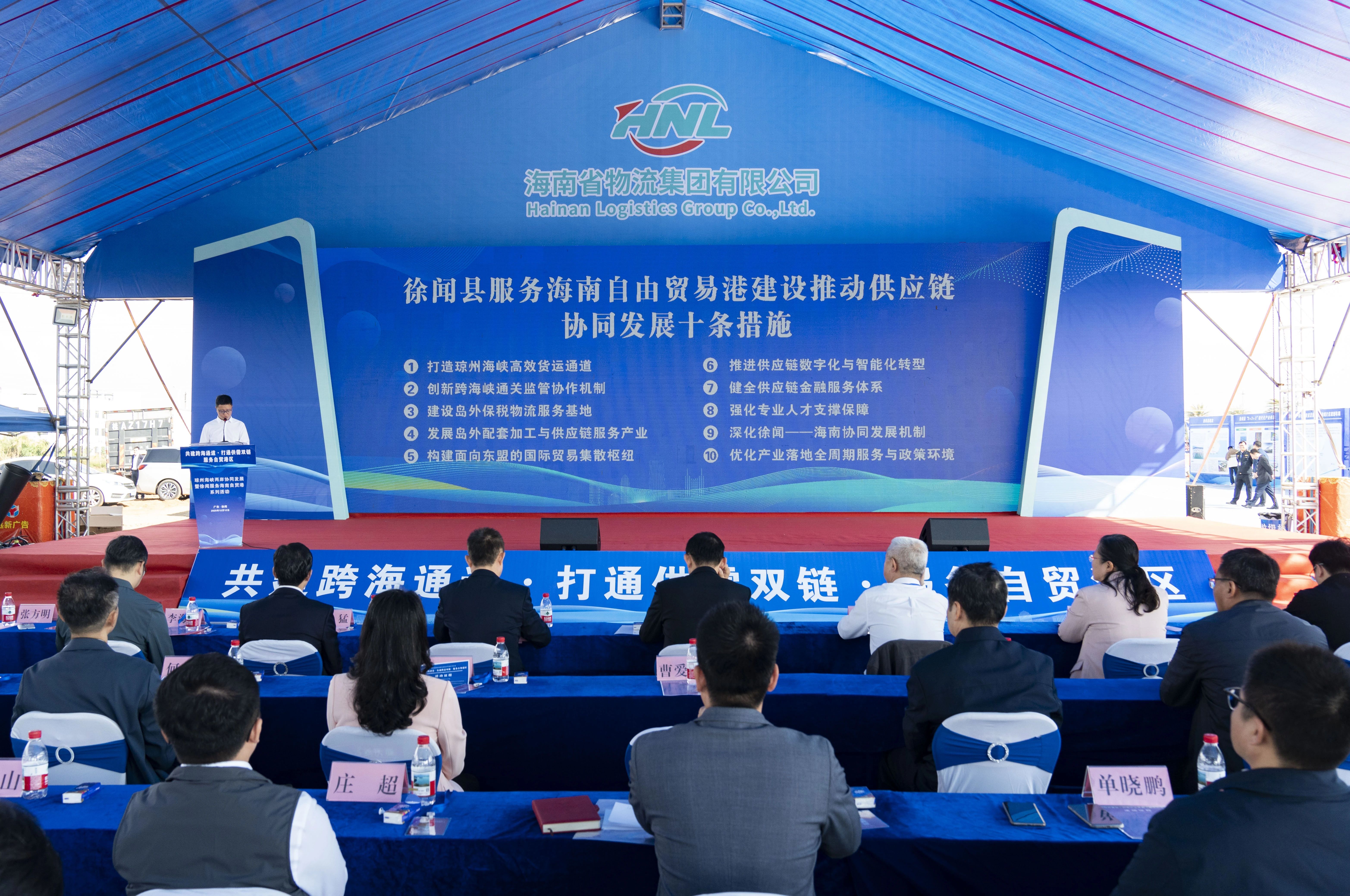 12月12日上午,琼州海峡两岸协同发展暨徐闻服务海南自贸港系列活动在徐闻县国际物流园举行,该活动是在广东省农业农村厅、海南省农业农村厅共同指导下,由徐闻县委、县政府主办,海南省物流集团承办的一次以“共建跨海通道·打通供需双链·服务自贸港区”为主题的大型项目签约启动仪式。广东、海南两省有关部门领导,湛江、海口两市有关领导同志以及京东集团、海南顺丰速运有限公司等签约企业代表受邀出席本次活动。